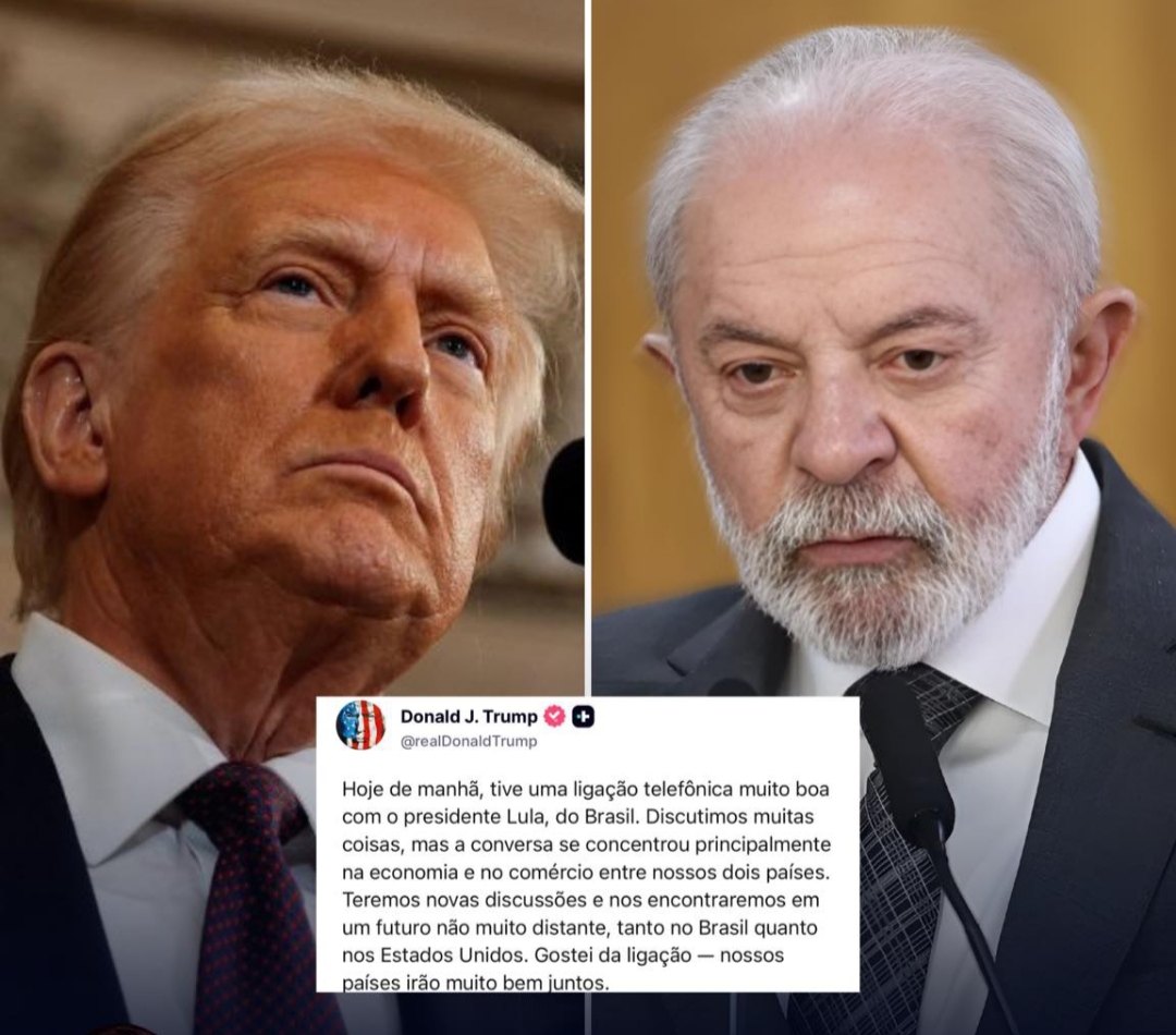 O presidente dos Estados Unidos, Donald Trump, confirmou ter conversado por videoconferência com o presidente Luiz Inácio Lula da Silva nesta segunda-feira (06). Segundo Trump, a ligação foi “muito boa” e focou principalmente em economia e comércio entre os dois países.