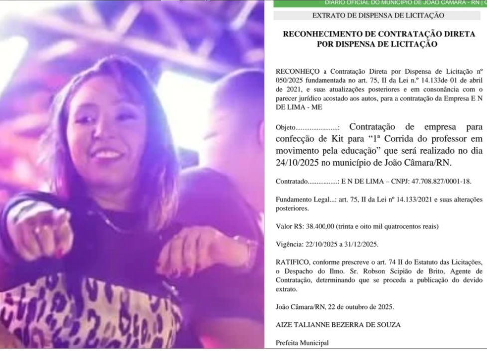 De acordo com publicação no Diário Oficial da FEMURN (Federação dos Municípios do RN), a contratação tem como objeto a confecção de kits para a “1ª Corrida do Professor em Movimento pela Educação”, evento que será realizado nesta quinta-feira, 24 de outubro de 2025, em João Câmara.