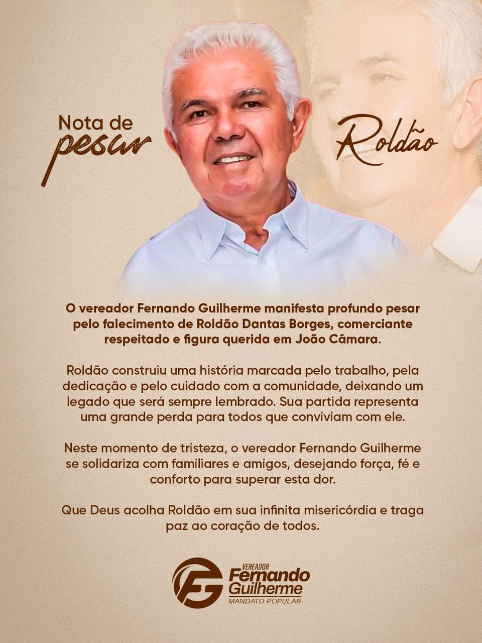 A cidade de João Câmara/RN perde um exemplo de cidadão, um homem íntegro e batalhador desde os seus primórdios… como pai foi um ser extraordinário, amado e venerado por toda a sua família, principalmente por Ivanilda (esposa) e seus filhos, sobrinhos, netos… quero neste momento de dor profunda, a dor do luto pela perda de um ser humano sem igual, a dor da lacuna que se abre, a qual será preenchida pela saudade absoluta, a lembrança de momentos que marcaram demais a vida de todos.