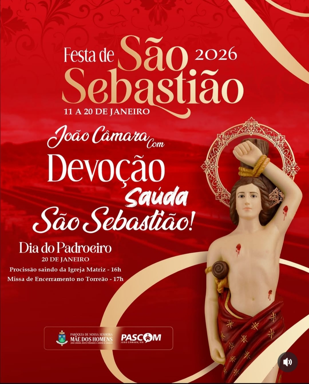 Nesta segunda-feira, 20 de janeiro, o município de João Câmara vivencia um dos momentos mais marcantes do seu calendário religioso com as celebrações em honra a São Sebastião, co-padroeiro da cidade. A data reúne fiéis, devotos e moradores em uma demonstração pública de fé que atravessa gerações e fortalece a identidade religiosa do povo camarense.