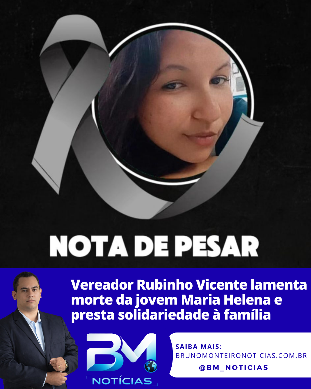 O vereador Rubinho Vicente manifestou profundo pesar pelo falecimento da jovem Maria Helena da Silva Moreira, ocorrido nesta terça-feira, 24 de março de 2026.