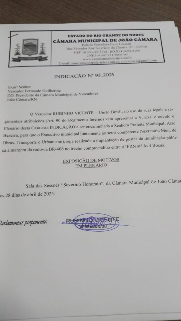 Na sessão ordinária da última segunda-feira (13), na Câmara Municipal de João Câmara, o vereador Rubinho Vicente apresentou e teve aprovados importantes requerimentos voltados à melhoria da infraestrutura urbana e esportiva do município.