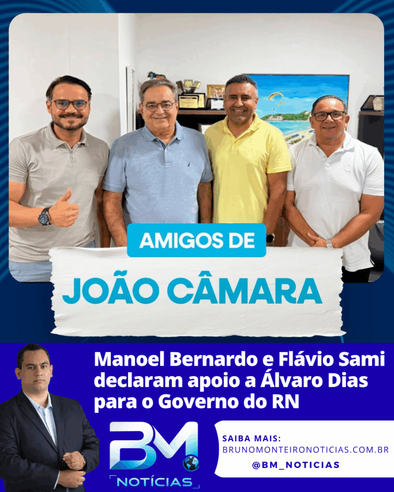 O ex-prefeito de João Câmara, Manoel Bernardo, e o vereador Flávio Sami, o mais votado nas últimas eleições municipais, declararam apoio ao pré-candidato ao Governo do Rio Grande do Norte, Álvaro Dias.